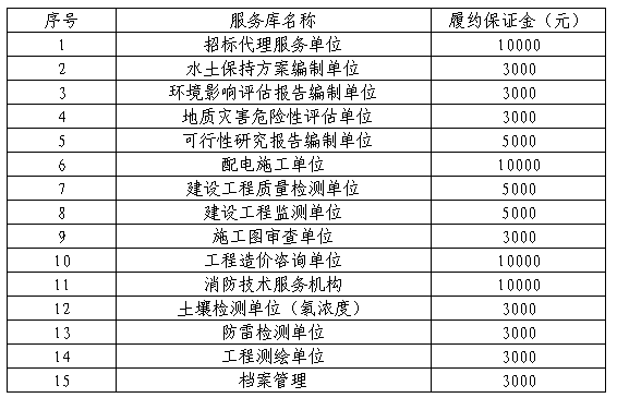 南平綠發(fā)集團(tuán)有限公司因經(jīng)營需要,擬成立服務(wù)庫,現(xiàn)實(shí)施2023年服務(wù)庫招錄,本次招錄合作期三年,要求如下: 一、本次招錄類別及資格條件 本次共招錄15個(gè)類別服務(wù)庫,綠發(fā)集團(tuán)及下屬公司在今后的工作中,在不違反有關(guān)法律、法規(guī)規(guī)定的前提下,結(jié)合集團(tuán)服務(wù)庫管理辦法,從服務(wù)庫中選擇具體的服務(wù)單位。滿足資格的南平市市屬國企單位可直接入庫,入庫的南平市市屬國企單位家數(shù)包含在對(duì)應(yīng)服務(wù)庫家數(shù)內(nèi)。若入圍家數(shù)少于3家不能形成有效竟?fàn)幍?,集團(tuán)公司將從庫外另行再邀請(qǐng)相應(yīng)服務(wù)單位參與比選。本次具體類別及資格條件要求如下: 1. 招標(biāo)代理服務(wù)單位(10家) 具備提供工程招標(biāo)代理服務(wù)的企業(yè)法人單位。且根據(jù)《閩建筑函[2018]26號(hào)》的規(guī)定投錄人應(yīng)當(dāng)取得公司法人《營業(yè)執(zhí)照》(登記營業(yè)范圍須包含工程招標(biāo)代理業(yè)務(wù))且完成并通過福建省住房和城鄉(xiāng)建設(shè)政務(wù)服務(wù)系統(tǒng)登記企業(yè)基本信息。(提供營業(yè)執(zhí)照復(fù)印件加蓋公章、福建省住房和城鄉(xiāng)建設(shè)政務(wù)服務(wù)系統(tǒng)登記證明材料加蓋公章) 2. 水土保持方案編制單位(5家) 具備建設(shè)項(xiàng)目水土保持方案編制水平評(píng)價(jià)證書 1星及以上資質(zhì)。(提供營業(yè)執(zhí)照和資質(zhì)證書復(fù)印件加蓋公章) 3. 環(huán)境影響評(píng)估報(bào)告編制單位(5家) 具備環(huán)境影響評(píng)估報(bào)告編制能力,且在環(huán)境影響評(píng)價(jià)信用平臺(tái)登記的單位。同時(shí)不得被列入《建設(shè)項(xiàng)目環(huán)境影響報(bào)告書(表)編制監(jiān)督管理辦法》規(guī)定的限期整改名單、環(huán)境影響評(píng)價(jià)失信“黑名單”。(提供環(huán)境影響評(píng)價(jià)信用平臺(tái)登記證明材料加蓋公章、未被列入限期整改名單和環(huán)境影響評(píng)價(jià)失信“黑名單的證明材料) 4. 地質(zhì)災(zāi)害危險(xiǎn)性評(píng)估單位(5家) 具備自然資源主管部門頒發(fā)的乙級(jí)及以上地質(zhì)災(zāi)害危險(xiǎn)性評(píng)估單位資質(zhì)。(提供營業(yè)執(zhí)照和資質(zhì)證書復(fù)印件加蓋公章) 5. 可行性研究報(bào)告編制單位(6家) 具備可行性研究報(bào)告編制能力,且應(yīng)是通過全國投資項(xiàng)目在線審批監(jiān)管平臺(tái)備案的工程咨詢單位(建筑工程、市政公用工程)專業(yè)。(提供通過全國投資項(xiàng)目在線審批監(jiān)管平臺(tái)備案相關(guān)信息截圖、營業(yè)執(zhí)照復(fù)印件、資質(zhì)證書復(fù)印件加蓋公章) 6. 配電施工單位(5家) 具備建設(shè)行政主管部門頒發(fā)的電力工程施工總承包或送變電工程專業(yè)承包三級(jí)及以上資質(zhì),并已通過南平電業(yè)局入網(wǎng)審查。(提供資質(zhì)證書復(fù)印件、通過南平電業(yè)局入網(wǎng)審查證明材料加蓋公章) 7. 建設(shè)工程質(zhì)量檢測(cè)單位(6家) 具備建設(shè)行政主管部門頒發(fā)的建設(shè)工程質(zhì)量檢測(cè)資質(zhì)。(提供營業(yè)執(zhí)照復(fù)印件和資質(zhì)證書復(fù)印件加蓋公章) 8. 建設(shè)工程監(jiān)測(cè)單位(6家) 具備建設(shè)行政主管部門核發(fā)的合格有效的工程勘察專業(yè)類(巖土工程物探測(cè)試檢測(cè)監(jiān)測(cè))乙級(jí)及以上資質(zhì)或工程勘察綜合甲級(jí)資質(zhì)。(提供營業(yè)執(zhí)照復(fù)印件和資質(zhì)證書復(fù)印件加蓋公章) 9. 施工圖審查單位(5家) 具備建設(shè)行政主管部門頒發(fā)的二類及以上施工圖審查資質(zhì)證書。(提供營業(yè)執(zhí)照復(fù)印件和資質(zhì)證書復(fù)印件加蓋公章) 10.工程造價(jià)咨詢單位(6家) 具備提供工程造價(jià)咨詢服務(wù)的企業(yè)法人單位。且根據(jù)《閩建筑函[2021]60號(hào)》的規(guī)定投錄人應(yīng)當(dāng)取得具有工程造價(jià)咨詢經(jīng)營范圍的營業(yè)執(zhí)照且完成并通過福建省住房和城鄉(xiāng)建設(shè)政務(wù)服務(wù)系統(tǒng)登記企業(yè)基本信息。(提供營業(yè)執(zhí)照復(fù)印件、福建省住房和城鄉(xiāng)建設(shè)政務(wù)服務(wù)系統(tǒng)截圖加蓋公章) 11.消防技術(shù)服務(wù)機(jī)構(gòu)(6家) 符合《應(yīng)急管理部關(guān)于印發(fā)〈消防技術(shù)服務(wù)機(jī)構(gòu)從業(yè)條件〉的通知》的消防技術(shù)服務(wù)機(jī)構(gòu)(建筑消防設(shè)施維護(hù)保養(yǎng)檢測(cè))。(提供營業(yè)執(zhí)照復(fù)印件、福建省消防技術(shù)服務(wù)信息平臺(tái)的截圖證明等相關(guān)證明材料加蓋公章) 12.土壤檢測(cè)單位(氡濃度)(5家) 具備市場(chǎng)監(jiān)督管理部門頒發(fā)的具有CMA標(biāo)志的資質(zhì)認(rèn)定證書。(提供營業(yè)執(zhí)照復(fù)印件和資質(zhì)證書復(fù)印件加蓋公章) 13.防雷檢測(cè)單位(6家) 具備氣象主管機(jī)構(gòu)頒發(fā)的雷電防護(hù)裝置檢測(cè)資質(zhì)。(提供營業(yè)執(zhí)照復(fù)印件和資質(zhì)證書復(fù)印件加蓋公章) 14.工程測(cè)繪單位(6家) 具備行業(yè)主管部門頒發(fā)的工程測(cè)繪資質(zhì)。(提供營業(yè)執(zhí)照復(fù)印件和資質