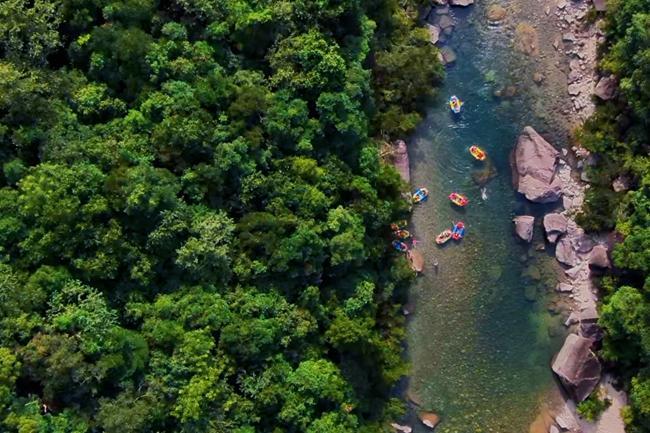 “到武夷山親水納涼”悄然成為避暑新風尚 “太美了,等不及了,我先跳?!苯?,在武夷山市洋莊鄉(xiāng)大安源生態(tài)旅游區(qū),面對一汪清澈見底的潭水,來自福州的戶外運動愛好者楊澤瑞先同伴一步縱身躍入水中。片刻后,他從潭底破水而出,深吸一口山間清新的空氣,夸贊道:“潭水清冽又舒爽,這絕對是我近期最暢快的親水體驗了!” 青山蔥郁,秀水靈動,綠水青山是武夷山最大的“涼方”。踏入武夷山國家公園,仿佛一頭撞進了天然的清涼結界——這里峰巒疊翠,林木繁茂,負氧離子含量豐富,96.72%的森林覆蓋率托起“天然水空調”。